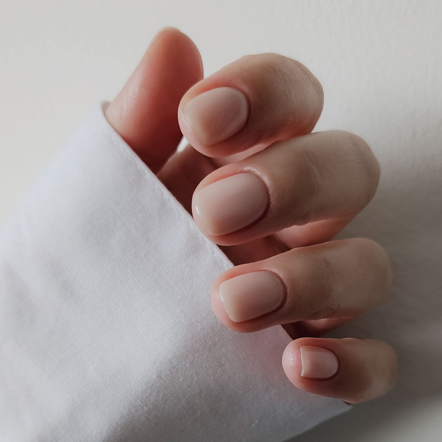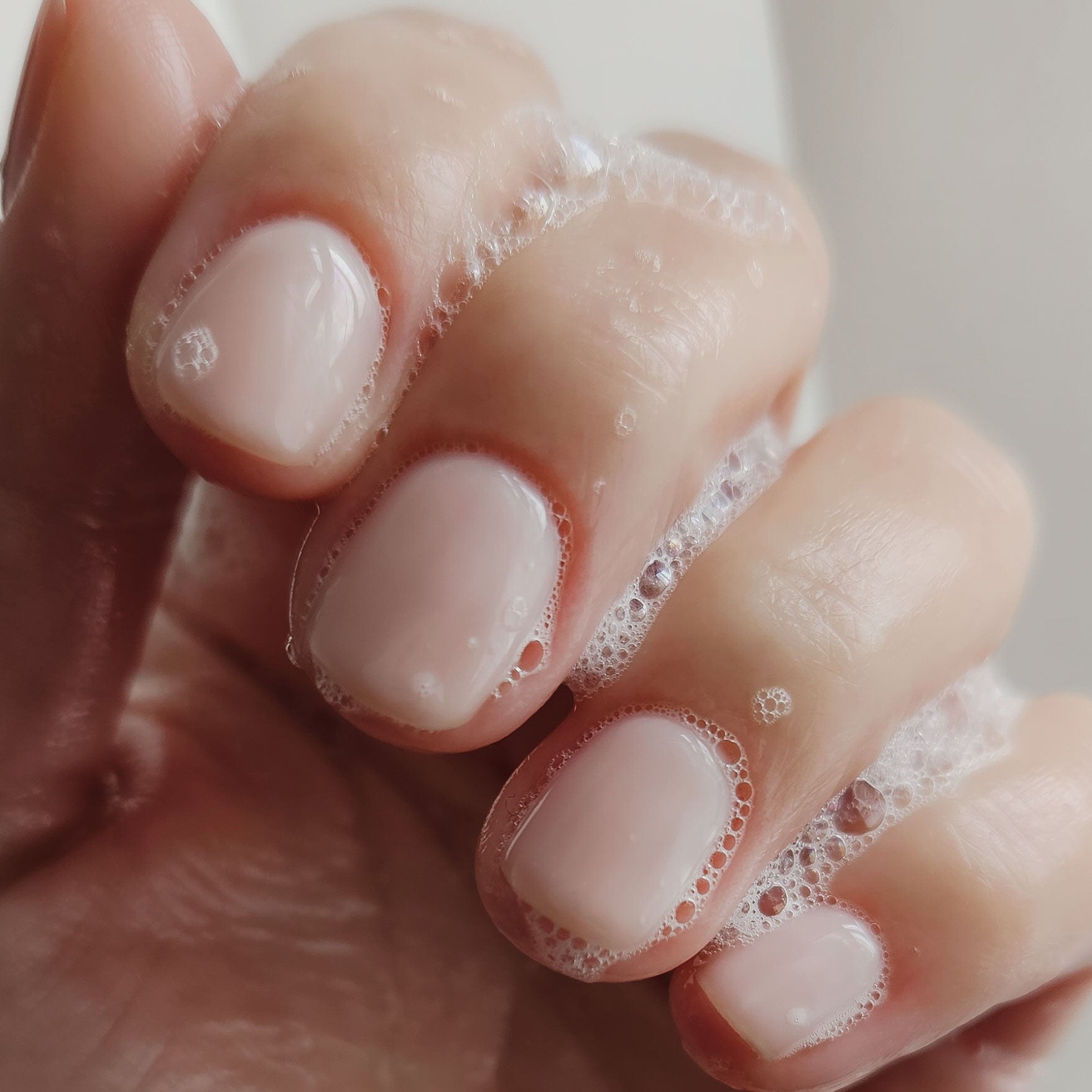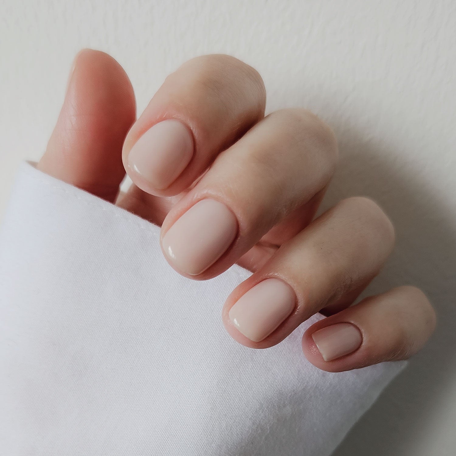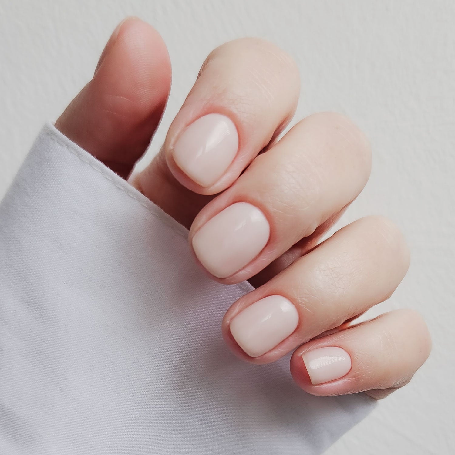 I Do is a very light peachy nude that achieves a glossed, milky finish. This is a super sheer shade that can be built up with more coats if a slightly more opaque finish is required. Product images show two coats over a clear base.