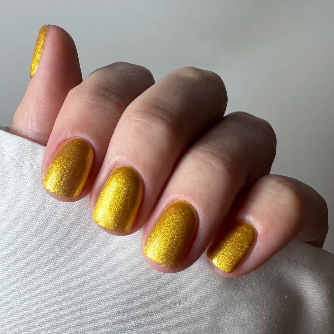 Radiant, bold, and full of warmth — Golden Hour captures the glow of late-afternoon sunlight in a bottle. This rich metallic yellow-gold shimmers with micro-reflective particles that bring depth and luminosity to every set. Perfect for statement looks, summer nails, or adding a touch of luxury to your designs.