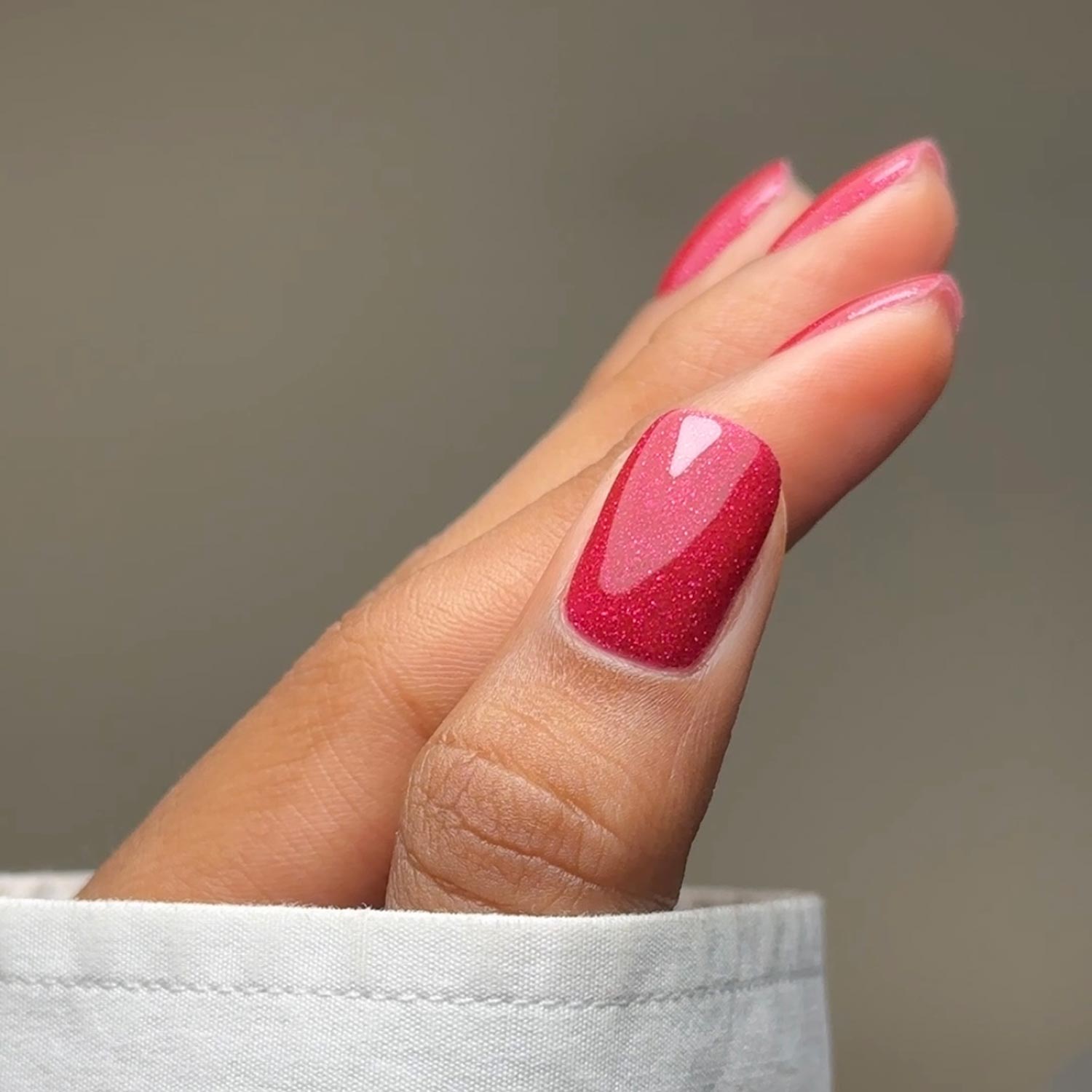 Get ready to shine with Ruby, a captivating red gel polish that’s as stunning as it is festive. Packed with delicate red micro-glitter, this shade delivers a true shimmer finish that sparkles with every move. Perfect for adding a little extra glamour to the holiday season or any special occasion, Ruby is your go-to shade for nails that truly dazzle.